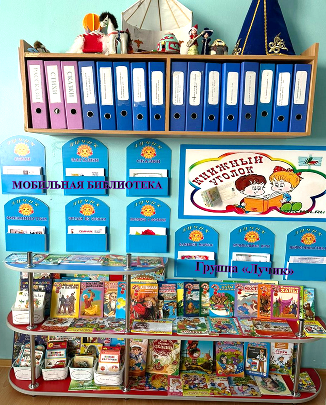«Мектепке дейінгі тәрбие мен оқытуды дамыту моделінің» жаңалығын іске асыру аясында, әр топта кітап бұрышын ұйымдастыру қолға алынғаны, балалардың кітапқа деген қызығушылығын арттыру негізгі міндетке айналғаны белгілі. Осыған орай «Нұрбөбек» бөбекжайының барлық топтарында кітап бұрышын ұйымдастырумен қатар ата-аналар мен балаларға арналған ерекше ауқымды «Балалар мобильді кітапханасы» орталығы ашылды және барлық топтарда шағын орталықтар ұйымдастырылды.